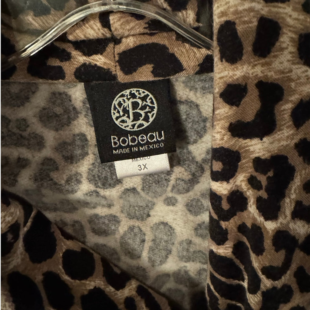 Fierce meets comfort in this stunning Bobeau 3X animal print knit jacket. Designed with a soft stretch blend, this piece drapes beautifully and flatters your curves with its flowy cut and single-button front. The fabric moves with you—lightweight yet cozy—making it perfect for layering over an ivory shell or black top. Whether styled for work or a night out, it’s a bold statement piece that always feels effortless.