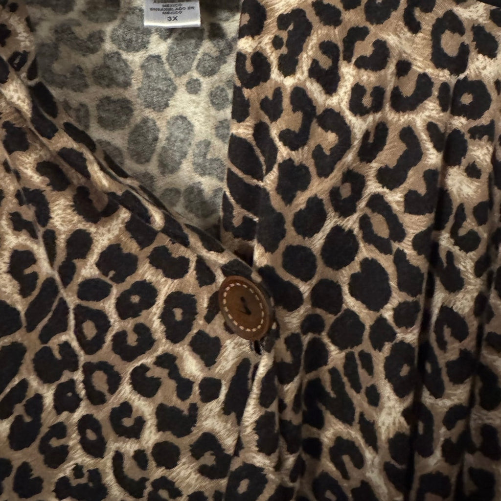 Bobeau 3X Leopard Animal Print Knit Jacket One Button Stretch Blazer