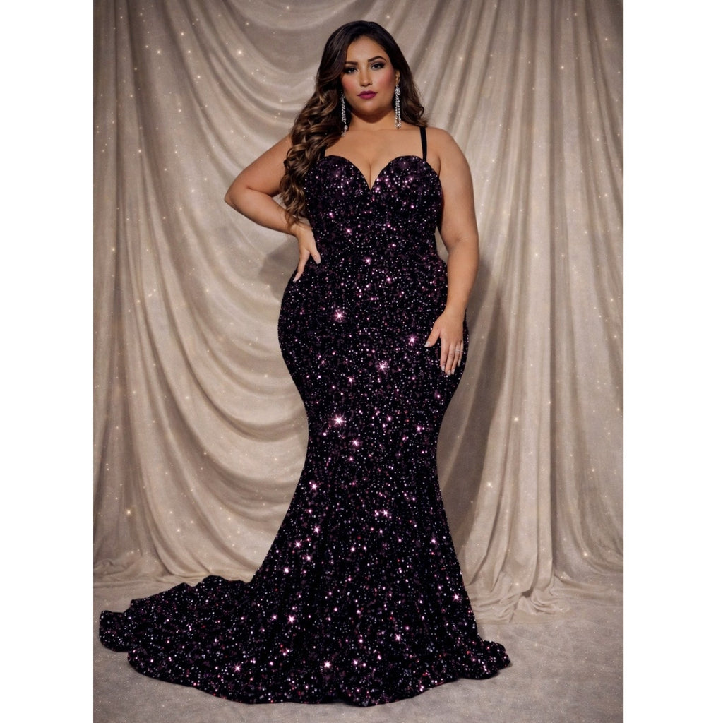 This gown is perfect for anyone looking for a luxe, curve-enhancing formal look with sparkle, structure, and timeless appeal.