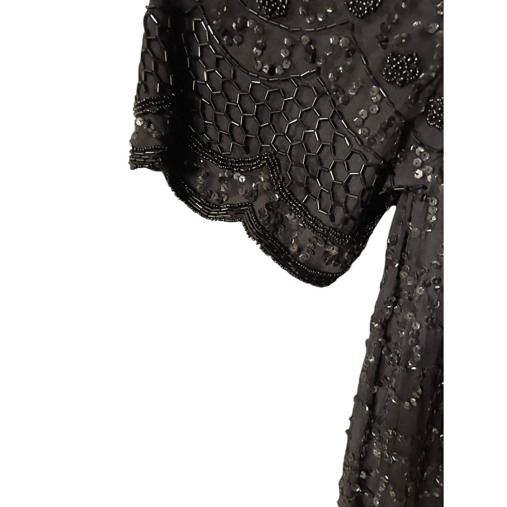 Brilliant Silk Beaded Cocktail Dress Black Tunic Overlay 2-Layer No Stretch Elegant 1X