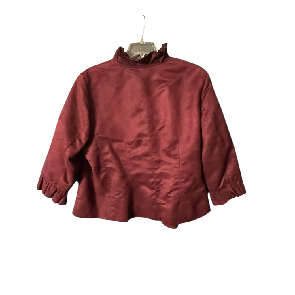 plus size jacket, wine jacket, ultra suede, ruffle trim, princess seams, Nygaard women, 20W blazer, dressy jacket, church outfit, career wear