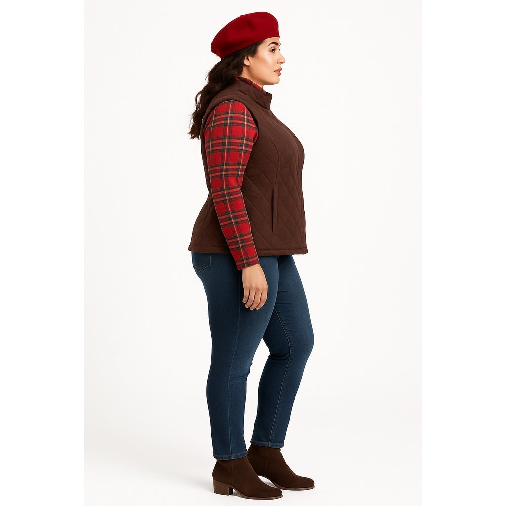 Salon Z Real Clothes Quilted Corduroy Vest Brown Size 16