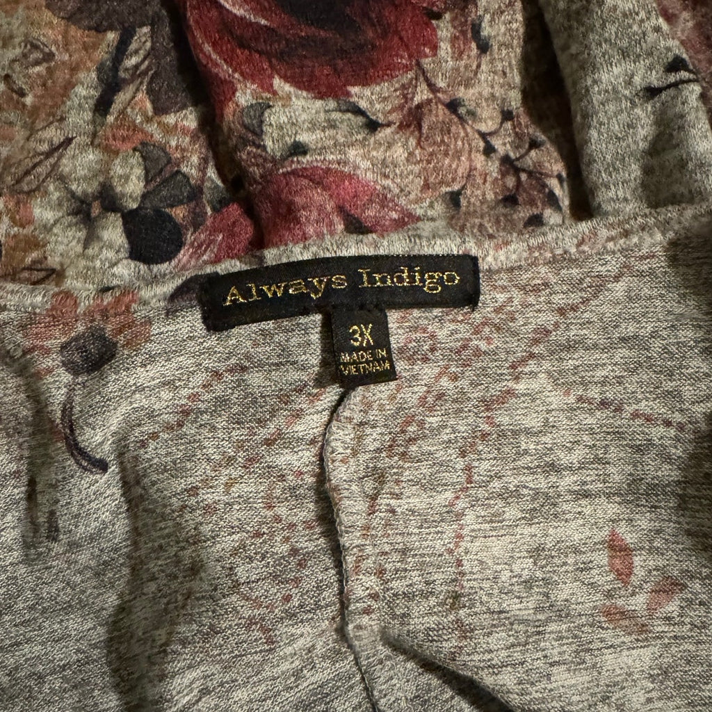 3X Floral Flowy Tunic Top 3/4 Sleeve Scoop Neck Boho Casual Knit