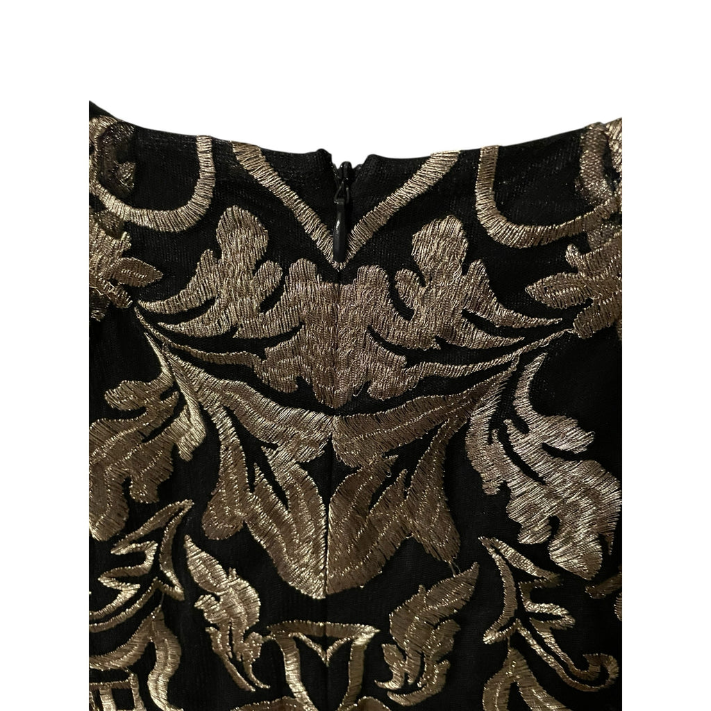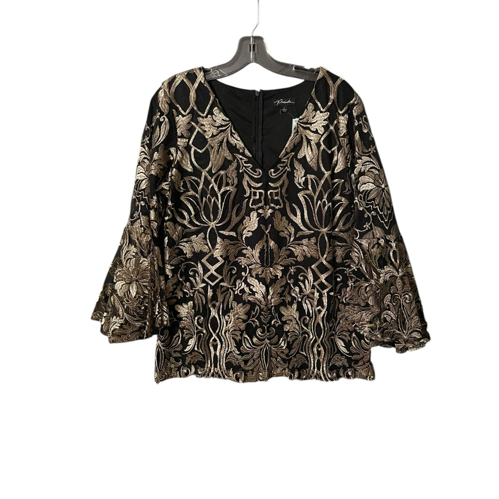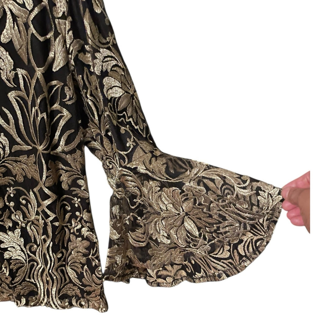 Prelude Black & Gold Metallic Embroidered Top with Bell Sleeves – Size Large