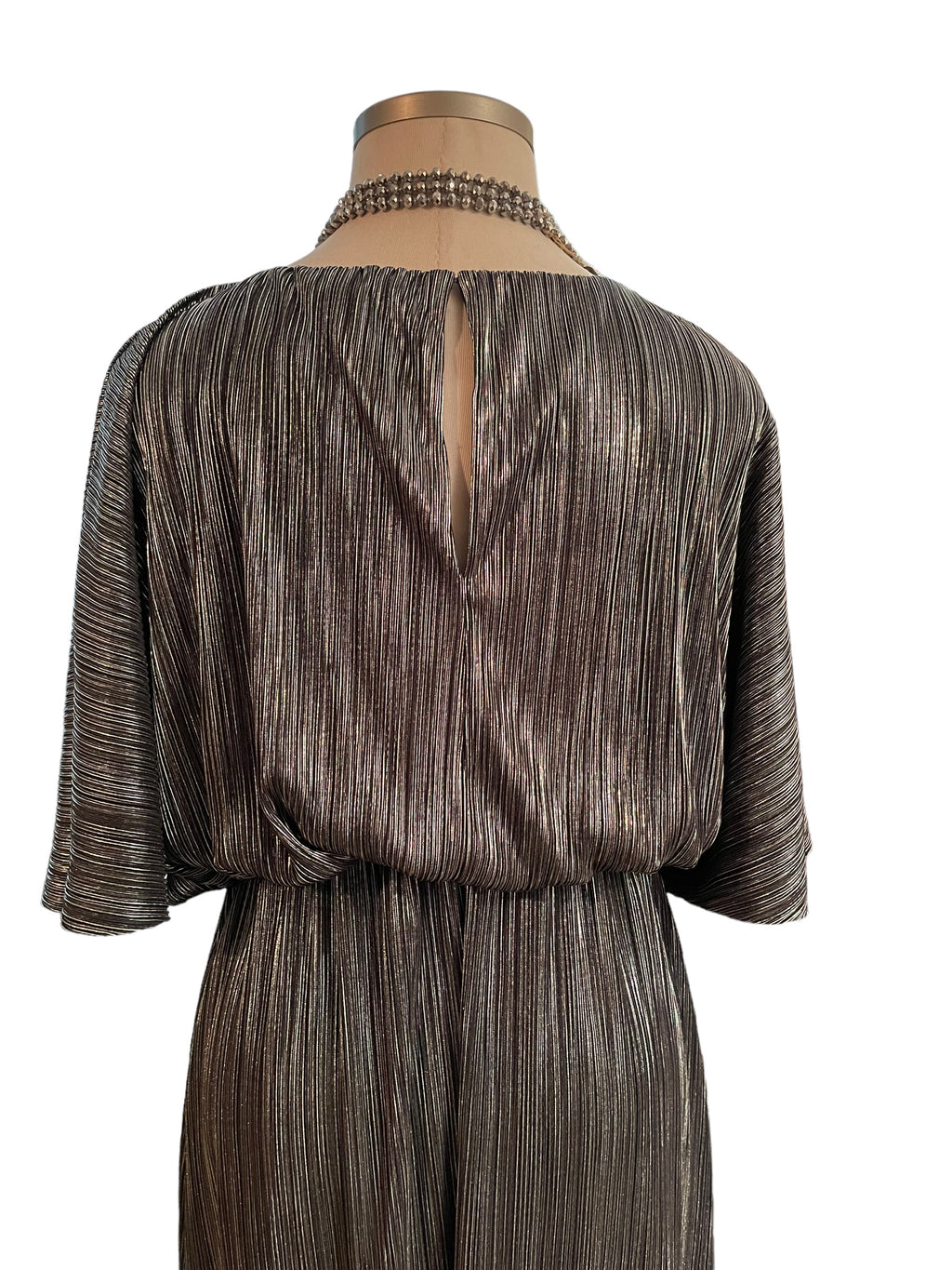 Blouson elastic waist with raw cut hem, loose sleeve metallic stripe pleats